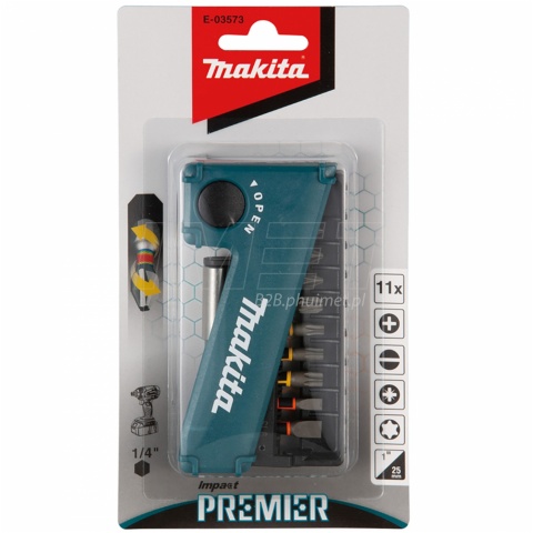 Zestaw 10 bitów udarowych Impact Premier 1/4'', 25mm Philips, Pozidriv, Torx oraz płaskie + uchwyt Makita E-03573