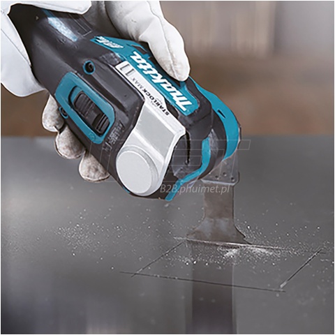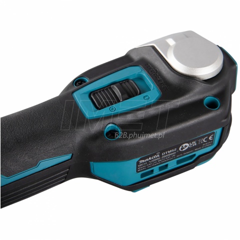 Narzędzie wielofunkcyjne Makita DTM52 jest wyposażone w mocny i wydajny silnik bezszczotkowy BLDC. Dzięki zastosowanej technologii bezszczotkowej narzędzie zapewnia dłuższy czas pracy na jednym naładowaniu akumulatora, przy jednoczesnym zmniejszeniu rozmiaru oraz zwiększonej wydajności w porównaniu z tradycyjnym silnikiem szczotkowym. Multitool posiada elektroniczną, 6-stopniową regulację prędkości obrotowej w zakresie 10 000 - 20 000osc./min, umożliwiającą dostosowanie parametrów do wykonywanej czynności. Narzędzie wielofunkcyjne wyposażone jest w uchwyt narzędziowy STARLOCK, kompatybilny z osprzętem serii STARLOCK MAX i STARLOCK PLUS. Takie rozwiązanie umożliwia wymianę osprzętu bez użycia dodatkowych narzędzi, co poprawia wygodę użytkowania. Dodatkowo, zainstalowane akcesoria możemy ustawić w 12 pozycjach. Jest to idealne rozwiązanie do odpowiedniego dostosowania kąta pracy. Dzięki zastosowaniu technologii AVT, narzędzie skutecznie tłumi drgania przenoszone na operatora, redukując jednocześnie zmęczenie podczas pracy. Ergonomiczna, wąska obudowa pokryta warstwą gumy pozwala na pewny i wygodny chwyt urządzenia. Łagodny rozruch zwiększa kontrolę nad narzędziem w chwili rozruchu, natomiast utrzymanie stałej prędkości obrotowej pod obciążeniem zwiększa wydajność. Zastosowana dioda LED z funkcją opóźnionego wygaszania doświetla przestrzeń roboczą. Urządzenie posiada także funkcję anty-restartu, która zabezpiecza przed przypadkowym ponownym uruchomieniem po przywróceniu napięcia, gdy włącznik znajduje się w pozycji pracy. W celu wydłużenia żywotności szlifierki, zastosowano zabezpieczenie przed przeciążeniem, przegrzaniem oraz głębokim rozładowaniem akumulatora.