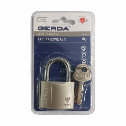 Kłódka pałąkowa GERDA KSWS-40 Secure wzmocniona nikiel satynowy 3 klucze