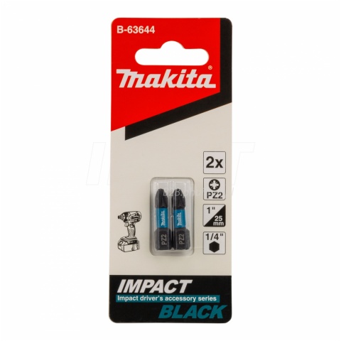 Zestaw 2 szt. końcówek udarowych POZIDRIV PZ2/25mm, Makita B-63644 Impact Black