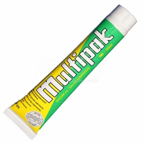 - SPOSÓB UŻYCIA: Łączone elementy należy oczyścić. Gwint posmarować pastą Multipak, nawinąć pakuły lniane, a następnie posmarować odpowiednią ilością pasty. Połączenie skręcić i ewentualnie usunąć nadwyżki pasty.