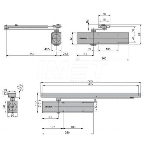 | Specyfikacja ramienia do samozamykacza Assa Abloy DCL190-9016 |