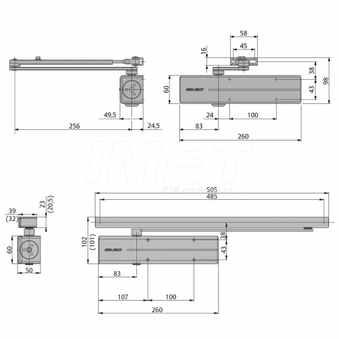 Do drzwi lewych i prawych (z możliwością zmiany kierunku) o szerokości skrzydła do 140 cm i ciężarze do 120 kg