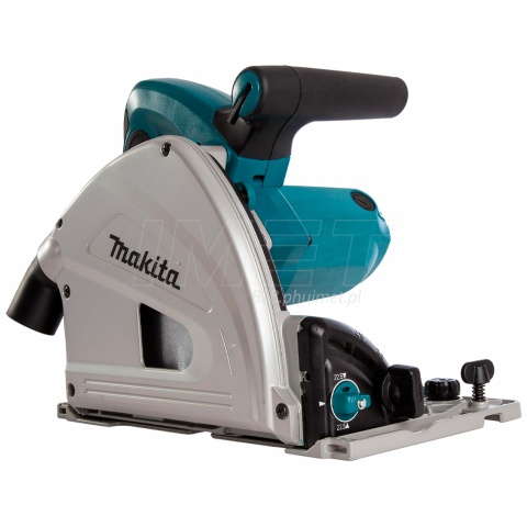 Profesjonalna pilarko zagłębiarka Makita SP6000J przeznaczona do dokładnych cięć w drewnie, drewnopochodnych oraz materiałach sztucznych. Mocy silnik o mocy 1300W, został wyposażony w elektronikę podtrzymującą stałe parametry pracy pod obciążeniem. Pilarka jest wyposażona w regulacje prędkości obrotowej w zakresie 2200-6400obr./min, pozwalając odpowiednio dobrać parametry do wykonywanej czynności. Atutem SP600J, jest beznarzędziowa regulacja głębokości i kąta cięcia. W celu zachowania bezpieczeństwa urządzenie, jest wyposażone w hamulec tarczy oraz zabezpieczenie włącznika przed przypadkowym uruchomieniem. Dla zwiększenia żywotności przekładni i silnika zagłębiarki SP600J posiada łagodny start, niwelując szarpnięcie podczas załączenia obrotów. Aby zachować czystość w miejscu pracy urządzenie posiada obrotowy wyrzutnik wiórów z możliwością podłączenia systemu odpylającego. Pilarko-zagłębiarka kompatybilna jest z szynami prowadzącymi, zapewniając precyzję wykonywanych cięć.