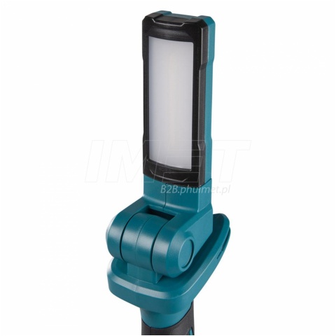 Lampa akumulatorowa Makita DML816 LED to wszechstronne i kompaktowe narzędzie oświetleniowe. Wyposażona w 18 wysokowydajnych diod LED, generuje światło o maksymalnej jasności 500 lumenów, co zapewnia doskonałą widoczność w miejscach o ograniczonym dostępie do światła. Latarka oferuje 3 tryby świecenia: 500 lumenów w trybie wysokim, 250 lumenów w trybie średnim oraz 100 lumenów w trybie niskim. Składana i obrotowa głowica lampy posiada 7 pozycji ustawienia w górę i w dół oraz możliwość obracania w lewo i w prawo, dla wielu kątów oświetlenia. Pokryty gumą ergonomiczny uchwyt odpowiada za komfort pracy, a duży hak umożliwia zawieszenie lampy, np. do rur rusztowań o średnicy do 50 mm.