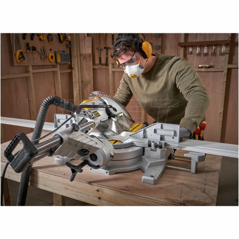 Piła kapówka Stanley umożliwia beznarzędziową regulację kąta cięcia zarówno w pionie, jak i w poziomie. 9 ograniczników ukośnych (zakres cięcia ukośnego od L47° do R52°), ograniczniki długości i głębokości zwiększają wygodę użytkowania, pozwalają na szybkie oraz precyzyjne ustawienie narzędzia. Ergonomiczny uchwyt ukośnicy podnosi komfort pracy, a podświetlana linia cięcia ułatwia prowadzenie narzędzia oraz oświetla przestrzeń roboczą, poprawiając widoczność w miejscu pracy. Przezroczysta osłona tarczy oraz zabezpieczenia przeciążeniowe zwiększają bezpieczeństwo pracy, co jest szczególnie ważne podczas intensywnego użytkowania. Elektronarzędzie wyposażone w port odsysania nieczystości, który w połączeniu z torbą na pył minimalizuje zanieczyszczenia w miejscu pracy. Wytrzymała konstrukcja, stalowe szyny o grubości 3,5 mm, odporna na kurz gumowa podkładka i solidna podstawa odpowiadają za stabilność podczas pracy i długą żywotność pilarki.