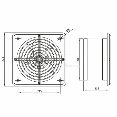 Wentylator ścienny DOSPEL 007-3815 WB-S Ø150 270m3/h 40W IPX2