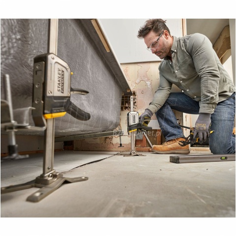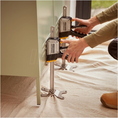 Zestaw 2 podnośników STANLEY FATMAX FMHT83552-1 TradeLift to profesjonalne narzędzia o udźwigu do 150 kg i zakresie podnoszenia 7-220 mm każde, idealne do precyzyjnego uniesienia ciężkich elementów, takich jak drzwi, okna, płyty gipsowe czy meble, w pojedynkę. Wykonane z trwałych materiałów, zapewniają niezawodność i bezpieczeństwo w trudnych warunkach pracy, a ich kompaktowa, lekka konstrukcja ułatwia transport i użytkowanie nawet w ciasnych przestrzeniach. Dzięki intuicyjnemu mechanizmowi obsługi i wszechstronności, dźwigniki świetnie sprawdzą się zarówno w rękach profesjonalistów, jak i majsterkowiczów, gwarantując wysoką wydajność i oszczędność czasu.