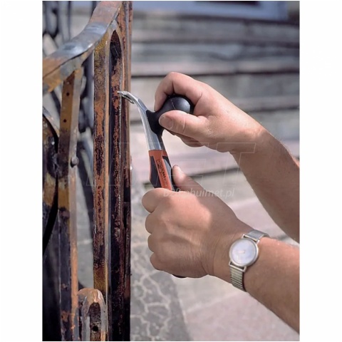 Ergonomiczny skrobak ręczny przeznaczony do intensywnego usuwania farb, klejów, lakierów, rdzy i innych trudnych zanieczyszczeń z powierzchni drewnianych, metalowych oraz betonowych