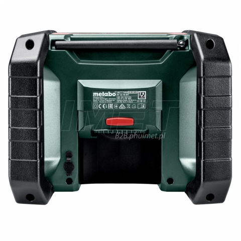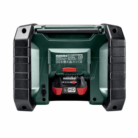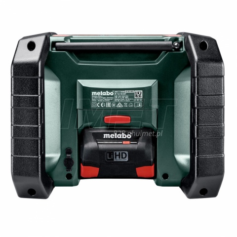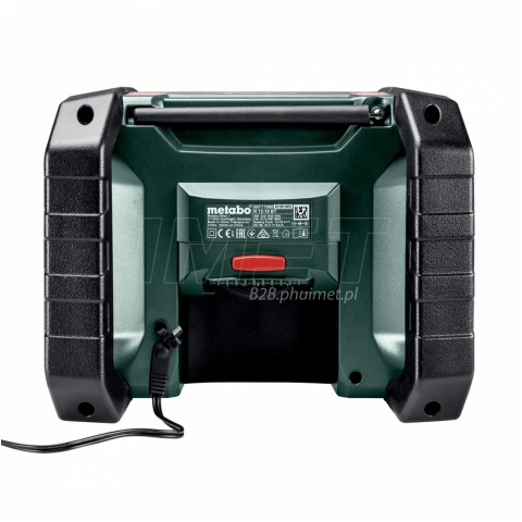Radio zasilisz każdym wsuwanym akumulatorem Metabo z serii 12–18 V albo bezpośrednio z sieci 230 V – masz więc pełną swobodę pracy w terenie lub na budowie.