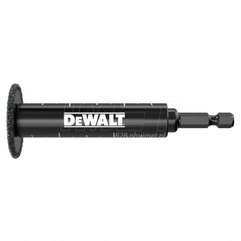 Adapter DeWALT DT20563-QZ to specjalistyczna przystawka udarowa z diamentową tarczą o średnicy 34 mm i uchwytem 1/4" HEX, przeznaczona do precyzyjnego cięcia rur PVC o średnicach od 32 do 203 mm. Dzięki ziarnu diamentowemu zapewnia nawet 10× dłuższą trwałość niż standardowe tarcze, gwarantując czyste i powtarzalne cięcia. Wyposażony w laserowo grawerowane oznaczenia głębokości oraz odporną na korozję powłokę z czarnego oksydu, adapter sprawdza się idealnie w pracach instalacyjnych i remontowych — zwłaszcza tam, gdzie dostęp do rury jest utrudniony. Kompatybilny z narzędziami DeWALT z systemem IMPACT CONNECT i większością zakrętarek udarowych, oferuje trwałość, wygodę i skuteczność w pracy.