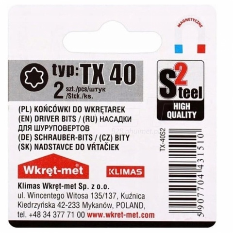 - Końcówki do wkrętarek i wiertarek, bity Wkręt-Met R-TX-40S2 25 mm 2 sztuki