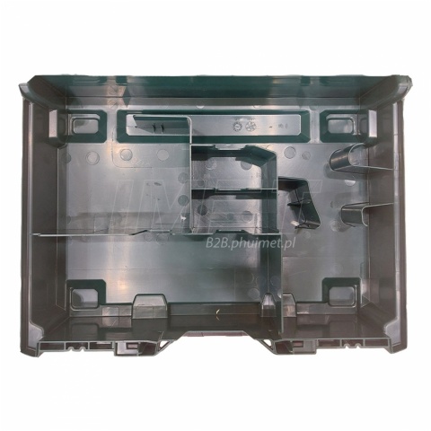 - Specjalnie zaprojektowane przegrody umożliwiają stabilne ułożenie wiertarko-wkrętarki, ładowarki i akumulatorów