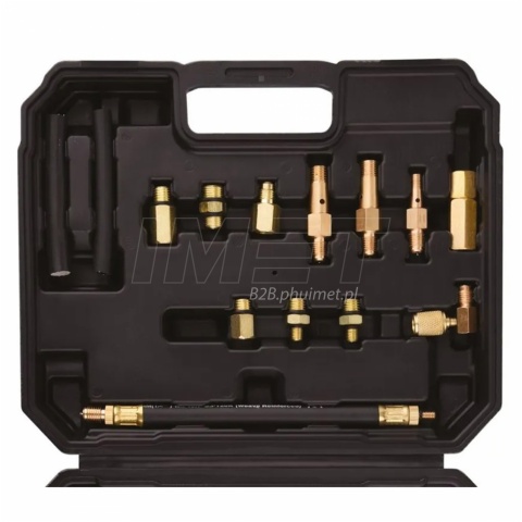 - Zestaw końcówek i redukcji umożliwia podłączenie do różnych typów wtryskiwaczy
