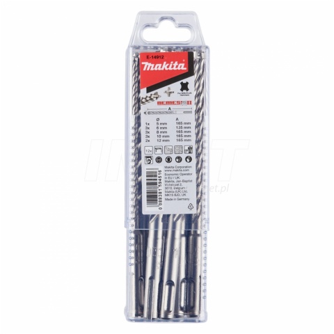 - Zestaw wierteł udarowych Makita E-14912 - 1 x 5x165 mm, 3 x 6x165 m, 3 x 8x165 m, 3 x 10x165 mm, 2 x 12x165 mm