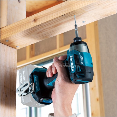 Zakrętarka udarowa Makita DTD173Z to profesjonalne narzędzie zasilane akumulatorem Li-Ion LXT 18V, zapewniające mobilność i wysoką wydajność. Dzięki bezszczotkowemu silnikowi osiąga maksymalny moment obrotowy 180 Nm, a regulacja prędkości obrotowej i częstotliwości udarów za pomocą 4 biegów pozwala na precyzyjne dopasowanie do różnych zadań. Użytkownik ma do dyspozycji cztery tryby szybkiego wyboru pracy: drewno, śruby, T1 i T2 – zoptymalizowane do pracy z cienką i grubą blachą. System XPT chroni narzędzie przed pyłem i wilgocią, a hamulec i bieg wsteczny zwiększają bezpieczeństwo oraz komfort użytkowania.