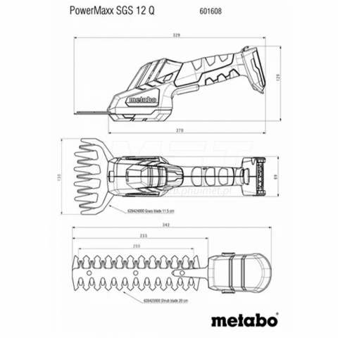 Nożyce do krzewów i trawy Metabo PowerMaxx SGS 12 Q SKU 601608850 12V BODY