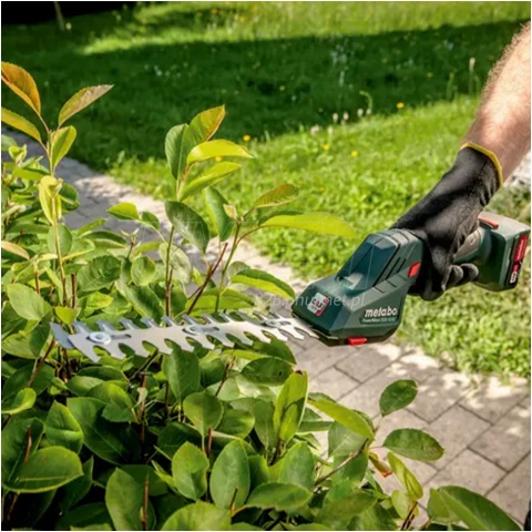 Sprzęt ogrodowy Metabo 601608850 pracuje w klasie 12 V z akumulatorem LiPOWER zapewniającym wydajną i mobilną pracę. Szybka, beznarzędziowa wymiana listew tnących dzięki systemowi Metabo Quick umożliwia łatwe przełączanie funkcji. Ostrza są laserowo cięte i diamentowo szlifowane co daje doskonałe efekty cięcia, a hamulec Fast Brake i wyłącznik bezpieczeństwa zwiększają ochronę użytkownika. Niewielki ciężar narzędzia, spokojna praca silnika i wąski gumowany uchwyt zwiększają komfort i precyzję pracy, natomiast stabilny teleskopowy wysięgnik dostępny jako akcesorium redukuje zmęczenie kręgosłupa przy przycinaniu trawy. Częstotliwość oscylacji na biegu jałowym wynosi 2300 oscylacji/min, co wraz z ergonomiczną konstrukcją i systemem szybkiej wymiany narzędzi Metabo Quick sprawia, że PowerMaxx SGS 12 Q jest wszechstronnym, bezpiecznym i wygodnym urządzeniem do precyzyjnego formowania krzewów i przycinania trawnika.
