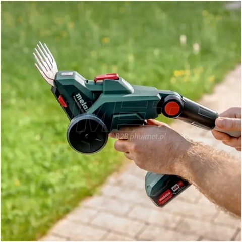 Akumulatorowe nożyce do krzewów i trawy Metabo PowerMaxx SGS 12 Q 601608850 to lekkie i mocne urządzenie 2 w 1 do ogrodu, łączące funkcje nożyc do krzewów do precyzyjnego formowania oraz nożyc do trawy do przycinania krawędzi trawnika.