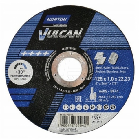 - Tarcza należy do serii Norton Vulcan i jest przeznaczona do profesjonalnego cięcia w warsztacie, budownictwie i majsterkowaniu