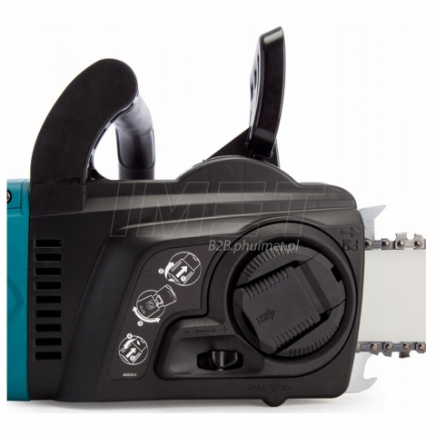 Dodatkowo piła Makita wyposażona jest w podwójną izolację, hamulec bezpieczeństwa natychmiast zatrzymujący ruch łańcucha oraz sprzęgło cierne chroniące silnik i łańcuch przed nadmiernym obciążeniem.