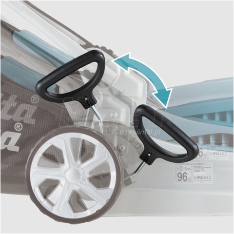 - Konstrukcja kosiarki umożliwia łatwe prowadzenie i stabilną pracę nawet na nierównym terenie