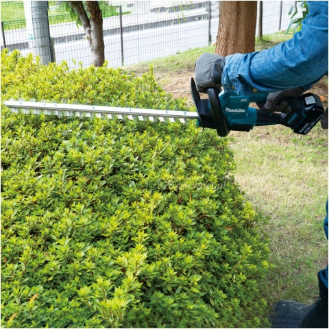 - Akumulatorowe nożyce do żywopłotu z systemu Makita 18 V LXT, które nie wymagają kabla - zasilane akumulatorem litowo-jonowym 18 V
