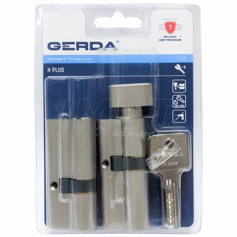Wkładka 40/50 + wkładka z gałką G50/40 GERDA HPlus 5kl ATEST nikiel satynowy