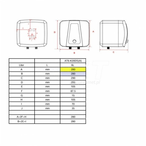 - Ogrzewacz wody ze zbiornikiem o pojemności 6 litrów, zaprojektowany do montażu nadumywalkowego, z dolnym podłączeniem