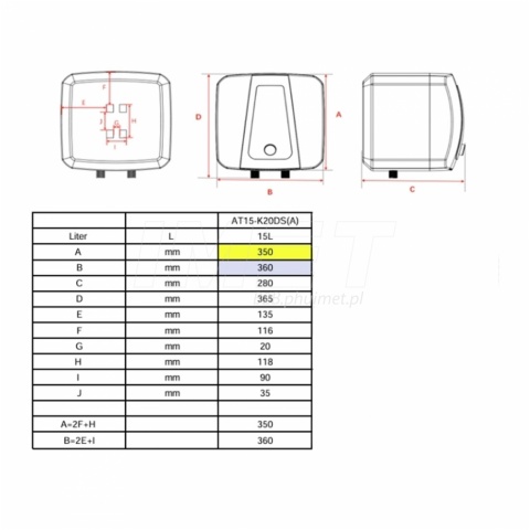 - Ogrzewacz wody ze zbiornikiem o pojemności 15 litrów, zaprojektowany do montażu nadumywalkowego, z dolnym podłączeniem