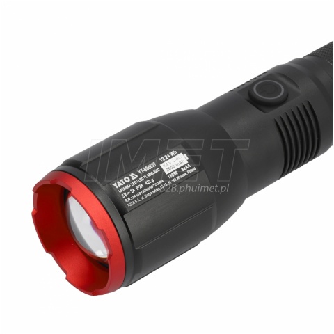 Latarka Yato YT-085607 to wydajne źródło światła o mocy 50 W, generujące do 5000 lumenów. Dzięki regulowanemu zoomowi użytkownik może szybko przełączyć się między szerokim oświetleniem przestrzeni a skupioną wiązką dalekiego zasięgu do 280 metrów.