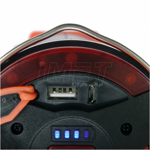 Wbudowany akumulator Li-Ion 4400 mAh umożliwia pracę nawet do 150 godzin w trybach oszczędnych. Urządzenie może również ładować inne sprzęty mobilne poprzez port USB. Odporność IP54 i wytrzymała obudowa z ABS i TPR pozwalają na użytkowanie w trudniejszych warunkach.