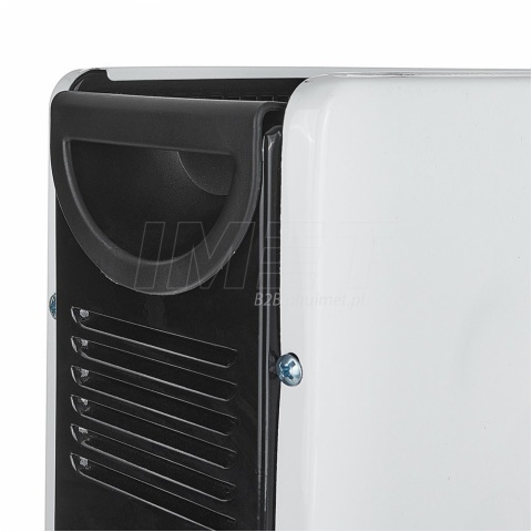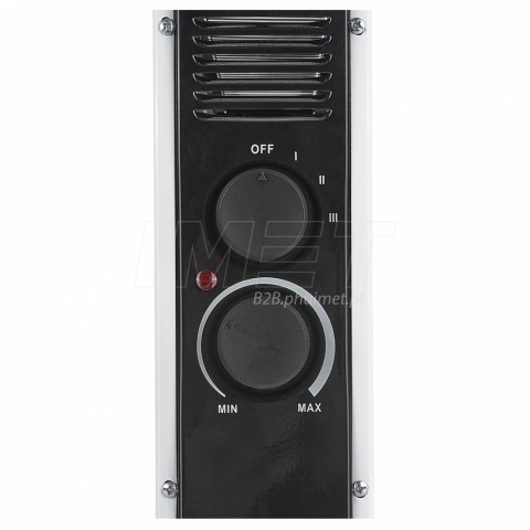 - Grzejnik oferuje trzy poziomy mocy grzewczej – 750 W, 1250 W i 2000 W – co pozwala dopasować moc do potrzeb użytkownika