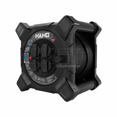 - Przedłużacz bębnowy kwadratowy PLASTROL W-00864 HAND 50m IP44 4gniazda 3x1,5mm czarny