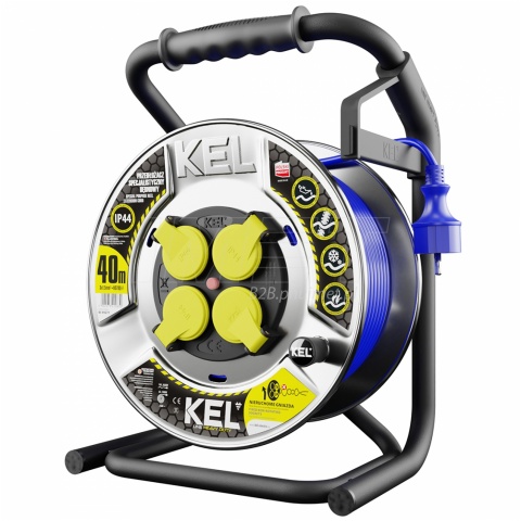 - Wyposażony jest w kwadratowy bęben z wygodną korbą, która umożliwia szybkie zwijanie i rozwijanie kabla
