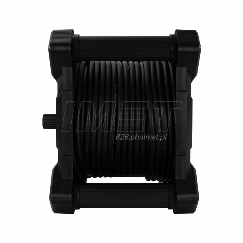 - Wyposażony jest w kwadratowy bęben z wygodną korbą, która umożliwia szybkie zwijanie i rozwijanie kabla