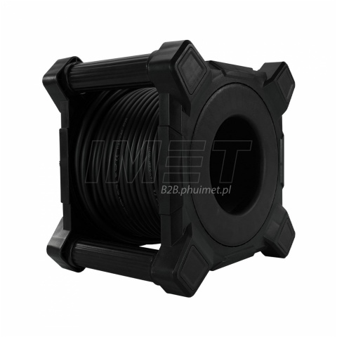 - Wyposażony jest w kwadratowy bęben z wygodną korbą, która umożliwia szybkie zwijanie i rozwijanie kabla