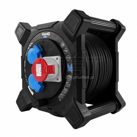 - Przedłużacz bębnowy siłowy PLASTROL W-00878 HAND 20m IP44 3gniazda 5x2,5mm kwadratowy czarny