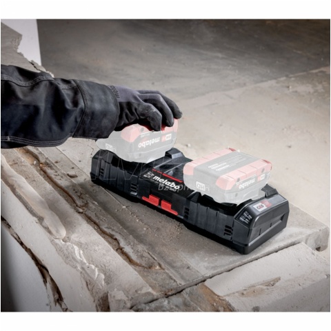 - Podwójna szybka ładowarka przeznaczona do akumulatorów systemu Metabo (Li-Ion i LiHD)