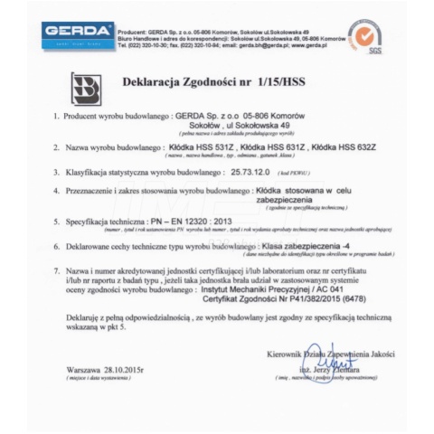 Kłódka pałąkowa GERDA została przebadana przez Centrum Laboartorium Kryminalistyki KG Policji.