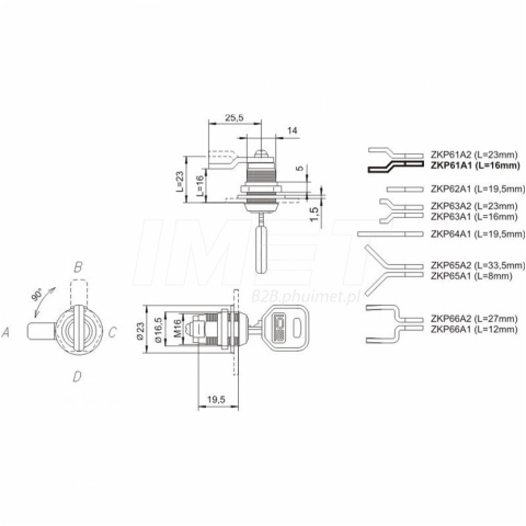 Zamek kasetkowy bębenkowy LOB ZKP61-20-03-A1 do szafek ubraniowych, szaf, kasetek, skrzynek na listy