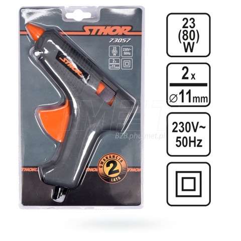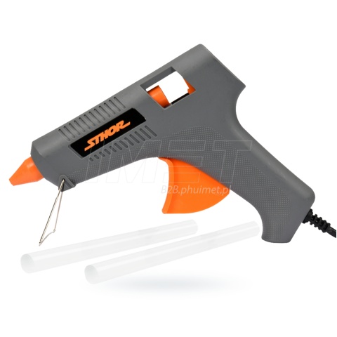 Bardzo dobrej jakości pistolet do kleju termotopliwego marki STHOR. Model ten jest doskonałą propozycją dla wymagających użytkowników, łączy w sobie bardzo dobre parametry techniczne, oraz wysoką jakość wykonania. Pistoletem możemy sklejać różne materiały: drewno, tworzywa sztuczne, metale, ceramikę, szkło, tekstylia, skórę i wiele innych. Stosowany jest również do modelowania, utrwalania, napraw, uszczelniania i spoinowania. Regulacja szybkości klejenia zależy od siły docisku użytkownika.