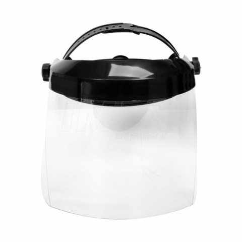 - Uniwersalna przyłbica ochronna z poliwęglanu przeznaczona do zabezpieczenia twarzy użytkownika podczas różnego rodzaju prac, w których istnieje ryzyko uderzeń lub odprysków materiałów, np. szlifowania, cięcia drewna, cięcia metalu, koszenia trawy czy wiercenia
