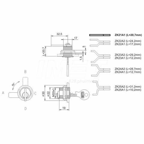 Zamek kasetkowy bębenkowy LOB ZK21-24-03-A1 do szafek ubraniowych, szaf, kasetek, skrzynek na listy