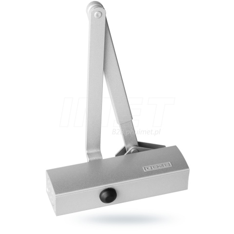 Samozamykacz wierzchni drzwiowy renomowanej firmy GEZE. Samozamykacz górny z ramieniem nożycowym do drzwi 1-skrzydłowych o szerokości skrzydła do 950 mm. Pasuje zarówno do drzwi prawych jak i lewych. Posiada regulację prędkości zamykania i ogranicznika hydraulicznego. Możliwość wyregulowania końcowej fazy zamykania, tzw. dobicia. Nastawna siła zamykania, wynosi EN 3 albo EN4. Szerokość skrzydła do 950mm albo odpowiednio do 1100 mm. Zmiana wartości siły przez obrócenie wspornika ramienia. Końcowa faza zamykania (dobicie) oraz prędkość zamykania regulowane hydraulicznie. Samozamykacz dostępny jest opcjonalnie wraz z płytą montażową. Korpus o wymiarach: 177mmx50mm. Opcja: Blokada położenia otwarcia w zakresie 70°-150°. Może być stosowany do drzwi przeciwpożarowych i dymoszczelnych.