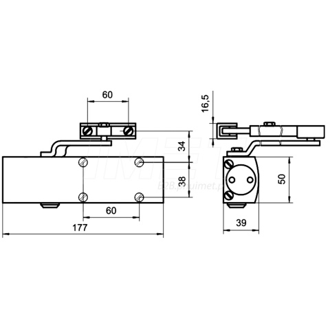 Samozamykacz wierzchni drzwiowy renomowanej firmy GEZE. Samozamykacz górny z ramieniem nożycowym do drzwi 1-skrzydłowych o szerokości skrzydła do 950 mm. Pasuje zarówno do drzwi prawych jak i lewych. Posiada regulację prędkości zamykania i ogranicznika hydraulicznego. Możliwość wyregulowania końcowej fazy zamykania, tzw. dobicia. Nastawna siła zamykania, wynosi EN 3 albo EN4. Szerokość skrzydła do 950mm albo odpowiednio do 1100 mm. Zmiana wartości siły przez obrócenie wspornika ramienia. Końcowa faza zamykania (dobicie) oraz prędkość zamykania regulowane hydraulicznie. Samozamykacz dostępny jest opcjonalnie wraz z płytą montażową. Korpus o wymiarach: 177mmx50mm. Opcja: Blokada położenia otwarcia w zakresie 70°-150°. Może być stosowany do drzwi przeciwpożarowych i dymoszczelnych.