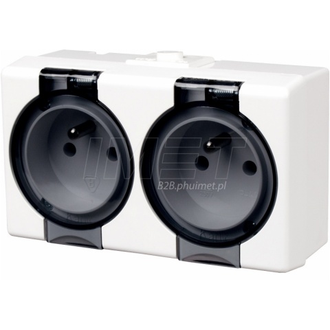 Gniazdo podwójne hermetycz (klapka biała) JUNIOR